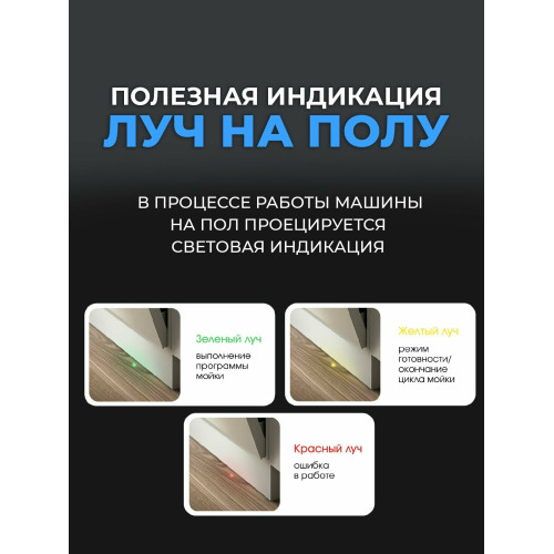 наличия ополаскивателя, наличия соли, Луч на полу (окончание цикла работы), Ход программ