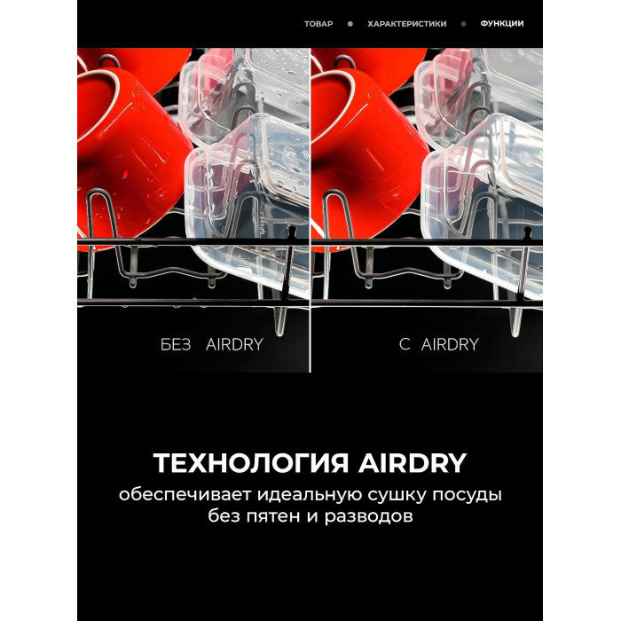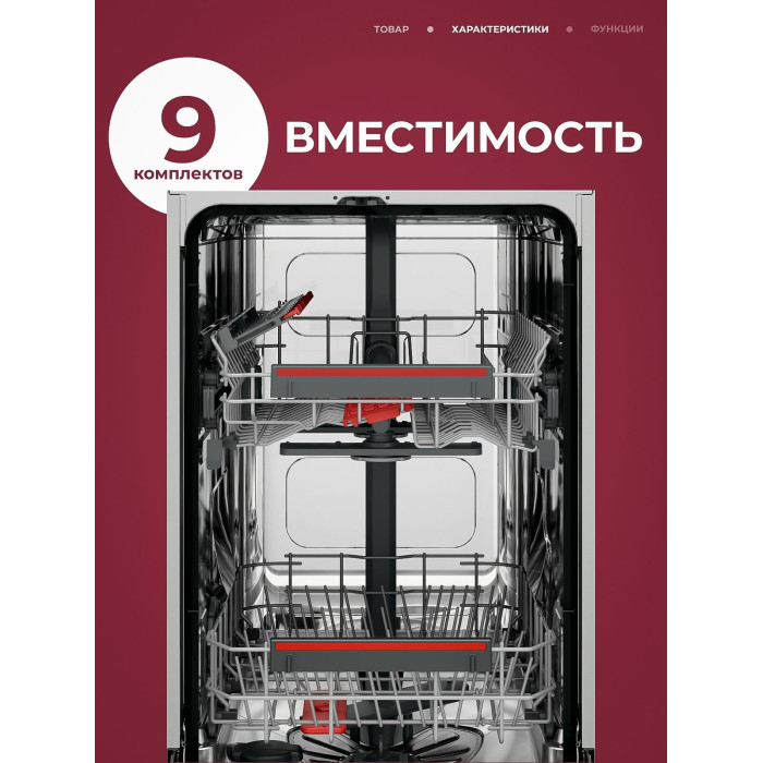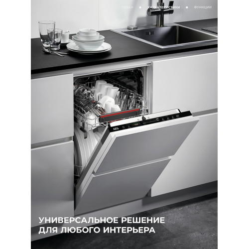 дисплей, Автоматическое открывание двери, Отсрочка запуска, Поддон для столовых приборов, Таймер