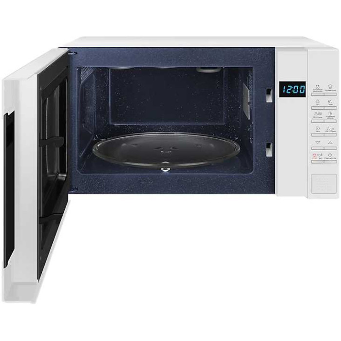 6 увроней мощности. Часы. Разогрев с грилем (+30 СЕК Гриль). Эко режим. Автоматические программы. Звук Включен/Выключен.