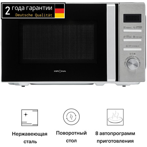 Стильная и современная микроволновая печь QUANTUM объёмом 20 литров открывается ручкой. Прибор позволяет размораживать продукты по весу и по времени. 8 рецептов автоприготовления помогают создавать кулинарные шедевры! Вы можете использовать многоступенчатое приготовление, а также блокировать управление, чтобы дети не смогли воспользоваться печью без присмотра.