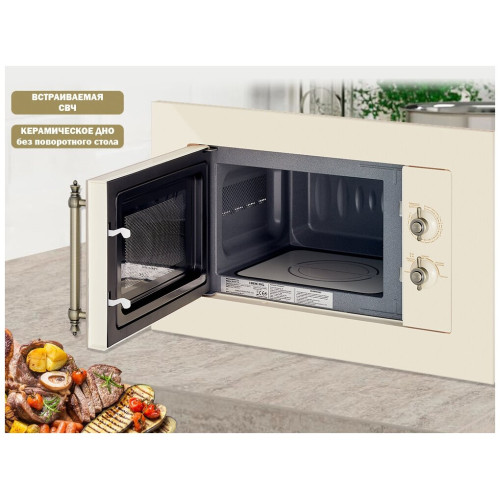 расположение: встраиваемая, объем: 20 л, переключатели: поворотные механические, мощность микроволн: 700 Вт, внутреннее покрытие камеры: керамика, ширина: 59.50 см, глубина: 31.30 см, высота: 37.60 см, режимы работы: соло, дополнительные режимы: звуковой сигнал отключения, особенности: подсветка камеры, без поворотного стола