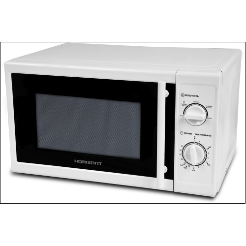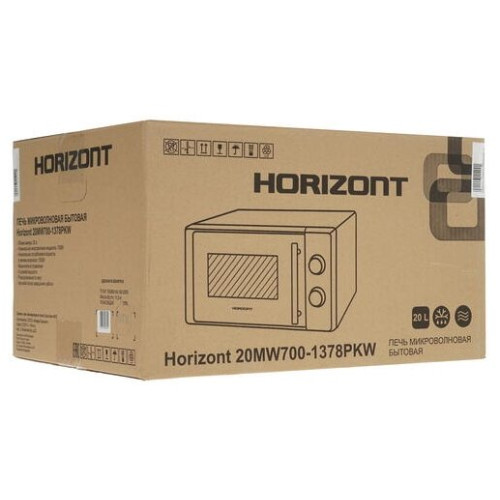 Микроволновая печь Horizont 20MW700-1378PKW с классическим белым корпусом вмещает 20 л и дополняется поворотным столом со стеклянным блюдом диаметром 25.5 см. Эмалированные стенки камеры без проблем очищаются от загрязнений. А чтобы было проще удалить засохшие частички пищи, достаточно поставить на 1-2 минуты стакан с водой и лимонной кислотой.