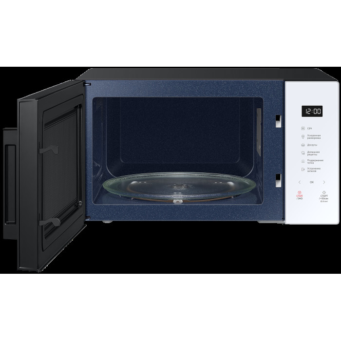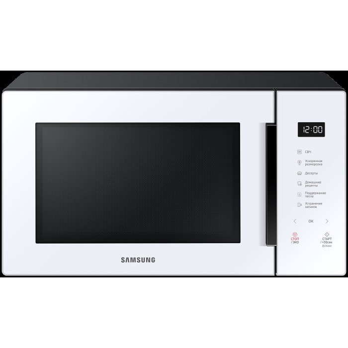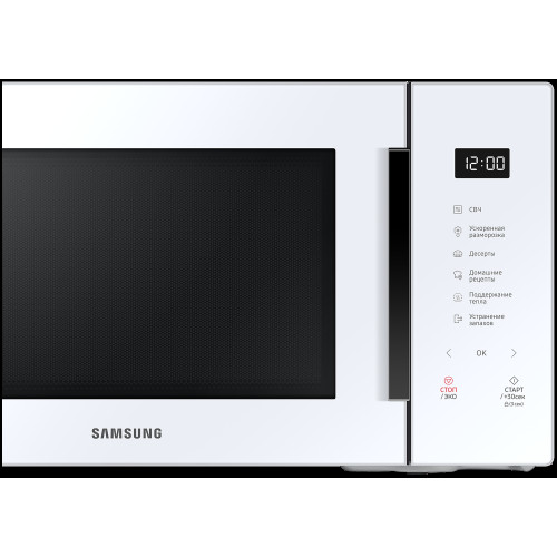 Микроволновая печь Samsung MS30T5018AW не только порадует вас широкими функциональными возможностями, но и станет отличным элементом интерьера. Быстрая разморозка Благодаря функции быстрой разморозки вам не придется томиться и ждать, пока разморозится мясо или рыба. Просто выберите тип продукта и его вес, а печь автоматически подберет время для эффективной разморозки продукта. И вы можете быть уверены, что все полезные свойства продуктов сохранятся! Высокая надежность Внутренние стенки камеры покрыты биокерамической эмалью, которая не покрывается царапинами и трещинами и легко чистится. Будьте уверены: эта печь прослужит вам долго. Сохранение энергии При работе в режиме Eco прибор будет потреблять минимальное количество энергии: вы не только уменьшите свои счета за электричество, но и внесете небольшой вклад в сохранение экологии. Стильный внешний ВИД Минималистичный дизайн, лаконичные линии, матовый цвет, стеклянные сенсорные кнопки — эта микроволновая печь станет не только функциональным помощником, но и стильным украшением вашей кухни.