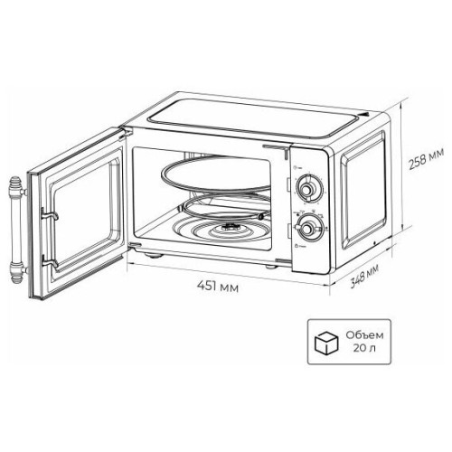 расположение: отдельно стоящая, объем: 20 л, переключатели: поворотные механические, поворотные тактовые, мощность микроволн: 700 Вт, внутреннее покрытие камеры: эмаль, ширина: 45.10 см, глубина: 34.80 см, высота: 25.80 см, режимы работы: разморозка, дополнительные режимы: автоматическая разморозка, звуковой сигнал отключения, автоматический разогрев, диаметр поддона: 245 мм, особенности: система равномерного распределения микроволн