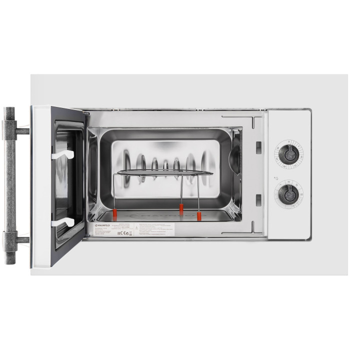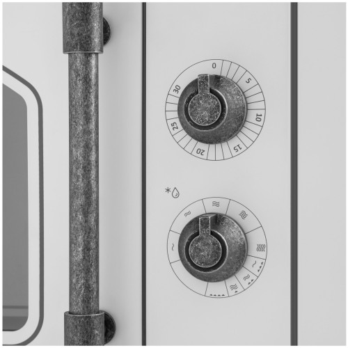 Встраиваемая микроволновая печь без поворотного стола, выполнена в ретро-стиле.