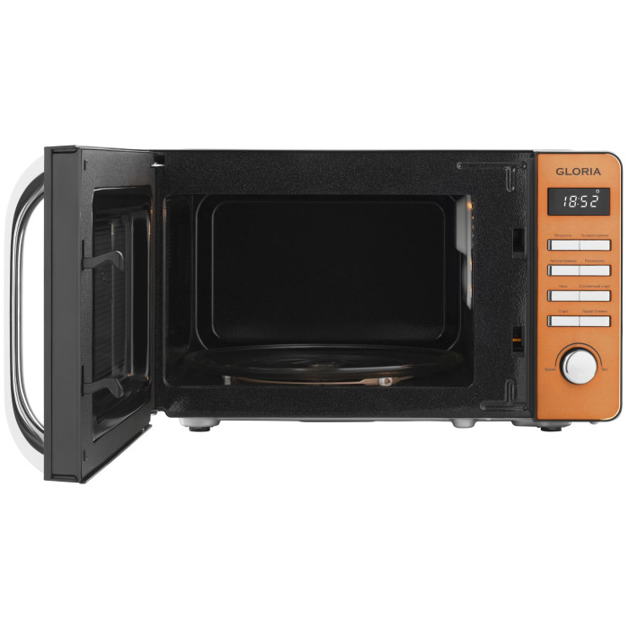 ХарактеристикиДиаметр тарелки, мм: 245Внутреннее покрытие: эмальДисплей: даЗащита от детей: даКоличество режимов приготовления: 8Функция размораживания: даГриль: нетЗвуковое сопровождение: даТаймер: естьПрозрачное стекло: нетЦвет корпуса: черный/бронзаГабариты без упаковки, мм: 451х348х258Открывание дверцы: ручкаТип управления: электронноеДлина сетевого шнура, м: 1Объем камеры, л: 20Мощность (Вт): 1280