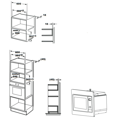 расположение: встраиваемая, объем: 18 л, переключатели: кнопочные, поворотные механические, мощность микроволн: 700 Вт, внутреннее покрытие камеры: нерж. сталь, ширина: 59.50 см, глубина: 32 см, высота: 38.20 см, режимы работы: гриль, микроволны + гриль, разморозка, дополнительные режимы: звуковой сигнал отключения, диаметр поддона: 245 мм, особенности: дисплей, Как ИКЕА
