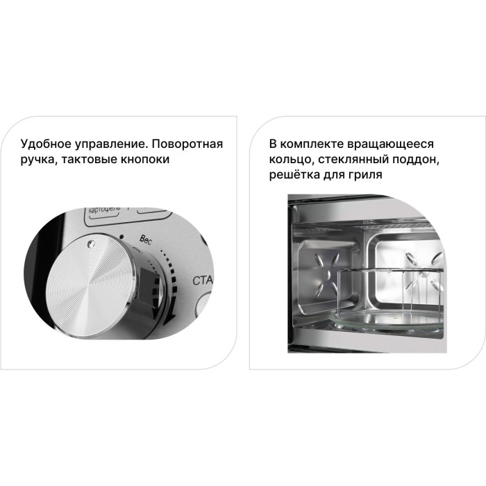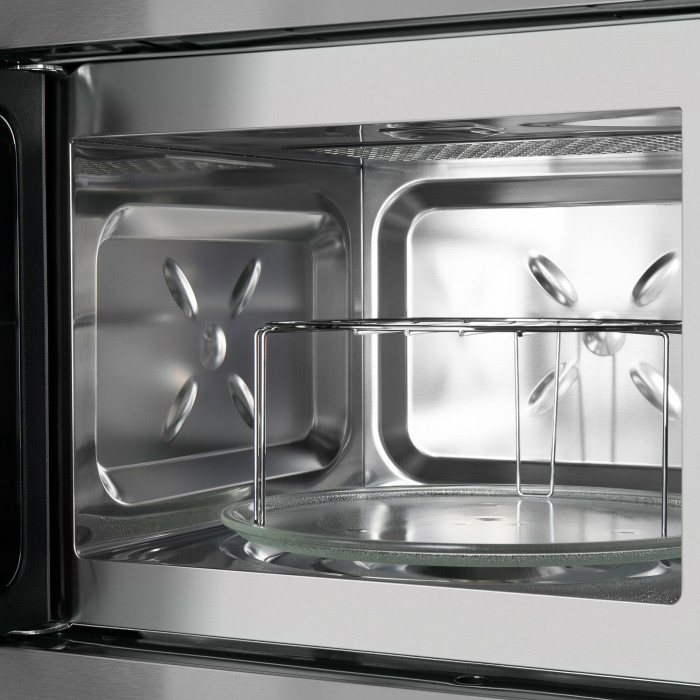 внутреннее покрытие камеры из нержавеющей стали AISI 304, толщиной 0.9 мм; комплектация: вращающееся кольцо, стеклянный поддон, решётка для гриля, инструкция на русском языке, комплект для установки (трафарет, зажим, болты, ориентир); тип освещения: галогеновое