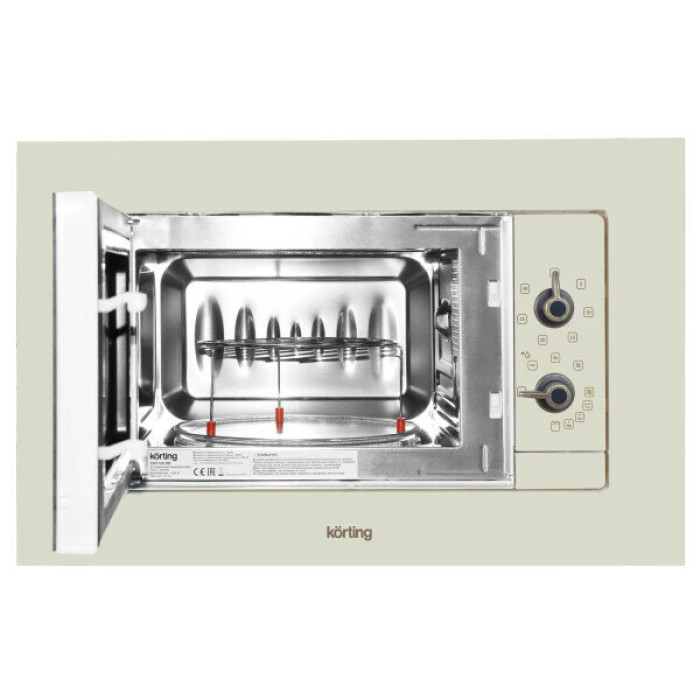 Классический дизайнДизайн ретро моделей микроволновых печей обладают не только одинаковым цветом, но и идентичными аксессуарами вместе с духовыми шкафами своей серии. Теперь в K? rting есть полноценный комплект духового шкафа и микроволновой печи в ретро дизайне, который позволяет устанавливать их в кухонной мебели друг под другом. ГрильВ микроволновых печах Korting установлен гриль. Гриль — это способ приготовления пищи с помощью нагревательного элемента. При этом пища приобретает красивую, румяную, поджаристую корочку. С помощью этой функции можно, например, приготовить курицу-гриль с хрустящей корочкой или подрумянить говяжий стейк. Автоматические программыЗаданные программы позволяют выбрать один из наиболее подходящих режимов работы в зависимости от типа блюда. После выбора программы пользователю достаточно выбрать соответствующий вес или объем, печь самостоятельно подберет время работы и мощность нагрева, вам остается немного подождать и достать вкусно приготовленное блюдо. Автоматическая разморозкаВ микроволновых печах Korting предусмотрен режим «автоматическая разморозка». С этой функцией вам не придется подсчитывать, сколько времени потребуется для разморозки того или иного продукта и какую мощность устанавливать - СВЧ-печь все сделает сама. Быстрый стартСпециальная кнопка «Быстрый старт», поможет вам запустить микроволновую печь на максимальной мощности на 30 секунд, что позволит одним нажатием разогреть небольшое количество еды, при необходимости нажмите на кнопку еще раз. Теперь даже ребенок быстро и удобно сможет разогреть свой обед! Функция «Защита детей»Управление прибором можно заблокировать, для обеспечения безопасности детей в доме. С заблокированной панелью управления, ваши дети не смогут воспользоваться микроволновой печью, вы можете быть спокойны, что ни чего страшного не произойдет. Основные: Тип: Встраиваемая техника Цвет: Слоновая кость, бронза Варианты цвета: Слоновая кость, бронза Дизайн: Ретро Объем (л): 20 Управление: Механическое Дисплей: Без дисплея Внутреннее покрытие: Нержавеющая сталь Освещение: Да Вилка питания: Да Блокировка управления: Нет Быстрый старт: Да Таймер: Да Многоступенчатый режим: Нет Разморозка: Да Авторежимы: Нет Комбинированное приготовление: Да Гриль: Да Конвекция: Нет Дополнительные характеристики: Входная мощность (Вт): 1080 Выходная мощность (Вт): 700 Мощность конвекции (Вт): Нет Мощность гриля (Вт): 800 Габариты (ВхШхГ) (мм): 376x592x310 Масса прибора (кг): 12.25 Срок гарантии (мес.): 24
