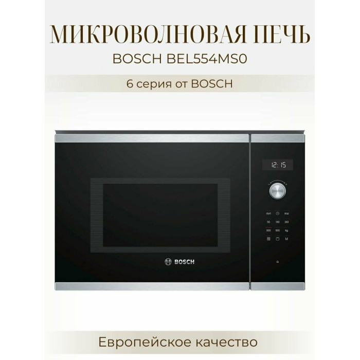 Встраиваемая микроволновая печь Bosch BEL554MS0 – прибор, который не займет много места на вашей кухне, зато стает вашим незаменимым бытовым помощником. Это устройство объемом 25 л, чьим покрытием стала биокерамическая эмаль – эстетично выглядящая и легко поддающаяся очистке. В печи вы можете не только подогреть блюдо, но и разморозить продукты, а также выбрать программы готовки. Внутреннее пространство прибора прогревается быстро и равномерно. Bosch BEL554MS0 снабжена дисплеем с простым и понятным сенсорным управлением, подсветка камеры дает возможность отслеживать процесс.