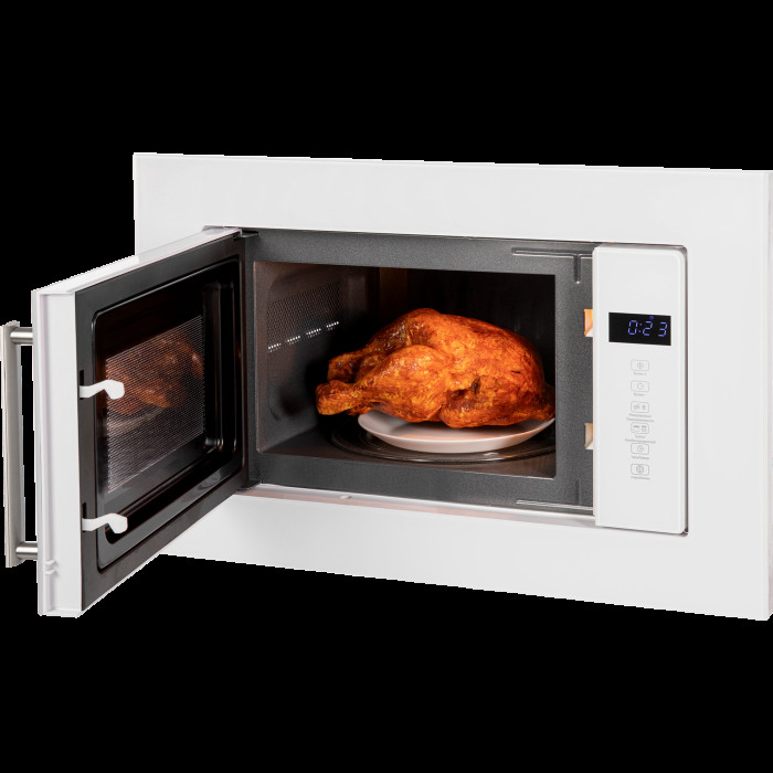 Встраиваемая микроволновая печь Hiberg VM 6502 W в современном стильном дизайне лаконично впишется в любой интерьер! Мощность СВЧ составляет 700 Вт и внутренний объем камеры 20 л. Главным преимуществом модели является Технология 3D-Surround – микроволны проходят через керамическое дно и равномерно воздействуют на приготовление пищи значительно быстрее и эффективнее, что делает вращающийся стол ненужным. Керамическое дно без поворотного стола простое в уходе и безопасно в использовании, а так же на такую поверхность можно поставить посуду любой формы и размера, разогревать или размораживать несколько блюд одновременно. Внутренняя камера модели так же с керамическим покрытием. Оно устойчивое к механическим повреждениям, не дает пригореть пище, легкое в очистке и уходе.