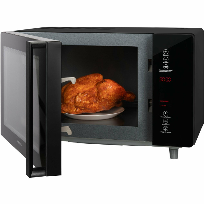 Микроволновая печь Hiberg VM 4588 B без поворотного стола имеет объем 25 литров, сенсорное управление, таймер и безопасный кварцевый гриль. Инновационная особенность модели - керамическое дно без поворотного стола. Оно простое в уходе и безопасно в использовании, на гладкую поверхность можно поставить посуду любой формы и размеров, а также разогревать несколько блюд одновременно. Камера внутри имеет эмалированное покрытие, устойчивое к механическим повреждениям, удобное в уходе и очистке. Электронное управление позволяет с легкостью регулировать мощность и время приготовления продуктов, выбирать необходимый режим, устанавливать таймер на запуск и окончание приготовления блюда.