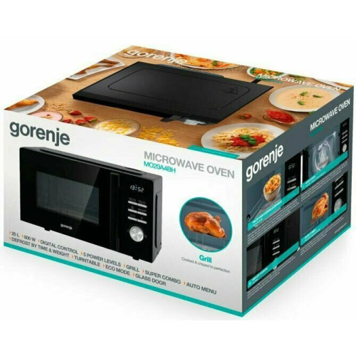 Микроволновая печь Gorenje MO20A4BH оснащена функциями разогрева, размораживания и гриля. 11 программ помогут приготовить птицу, рыбу или мясо, овощи. Встроенная подсветка позволяет следить за процессом. Мощность прибора в микроволновом режиме составляет 800 Вт, в режиме гриль — 100 Вт, тип управления — механический. Общий объем камеры составляет 20 л, внутреннее эмалевое покрытие устойчиво к воздействию высоких температур и влажности. Функция Aqua Clean позволяет очистить микроволновую печь без использования моющих средств. В комплекте — решетка для приготовления блюд на гриле.
