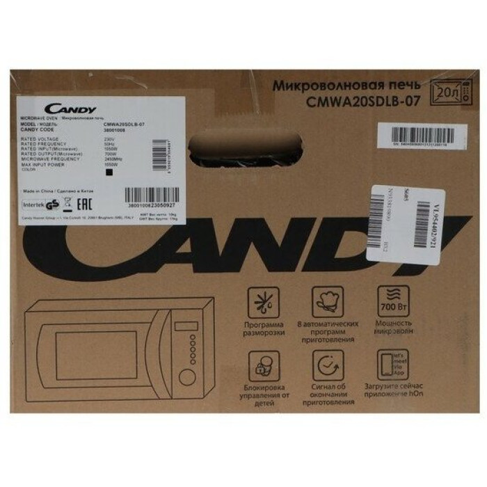 Микроволновая печь (СВЧ) Candy CMWA20SDLB-07 черный, мощность 700Вт, объем 20л, механическое управление (38001008)