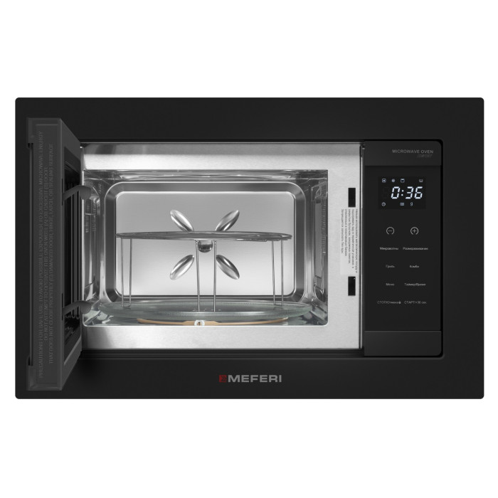 микроволновая печь; поворотный стол; решетка для гриля; комплект монтажа; инструкция на русском языке; гарантийный талон на 3 года