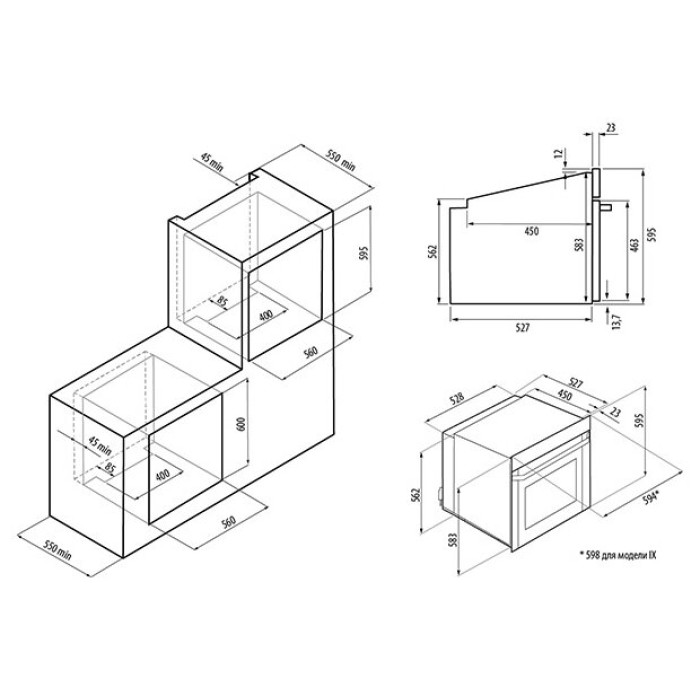 верхний нагрев + нижний нагрев, конвекция, нижний нагрев + конвекция, гриль + конвекция, большой гриль