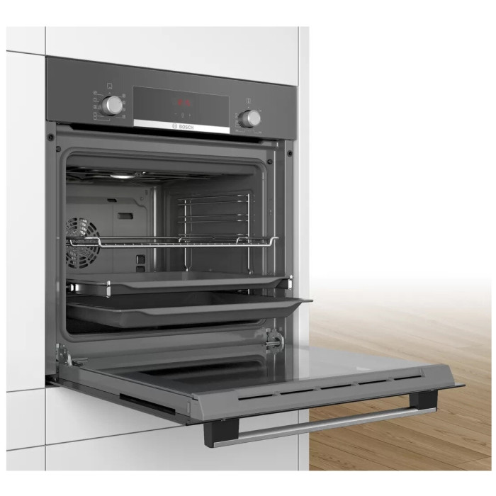 дополнительные режимы: 3D горячий воздух, горячий воздух gentle, режим для пиццы; телескопические направляющие на 1 уровне; встроенная система очистки: частично каталитическая; самоочистка Eco Clean: задняя стенка; многофункциональные электронные часы EasyClock включают в себя бытовой таймер, таймер приготовления, установку окончания приготовления; галогенное внутреннее освещение; система охлаждения прибора позволяет встроить в любой кухонный гарнитур; дверная ручка; длина сетевого кабеля: 100 см, тип штепсельной вилки: вилка с заземлением; предохранители: 16 A, напряжение: 220-240 В