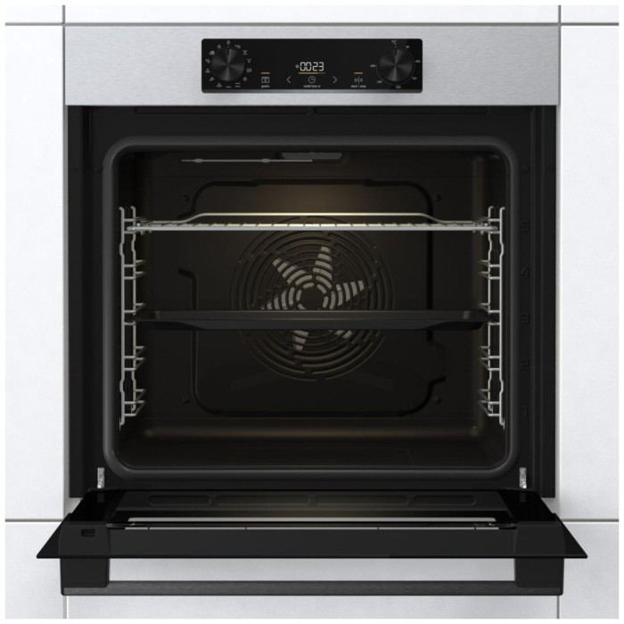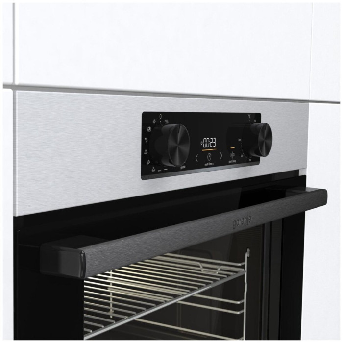 тип духовки: электрическая, установка: независимая, ширина: 59.50 см, гриль, очистка духовки: гидролизная, объем духовки: 77 л, количество стекол дверцы духовки: два, переключатели: поворотные, класс энергопотребления: A, особенности конструкции: дисплей, подсветка камеры, дополнительные функции: быстрый нагрев, размораживание, высота: 59.50 см, максимальная температура: 300 °C