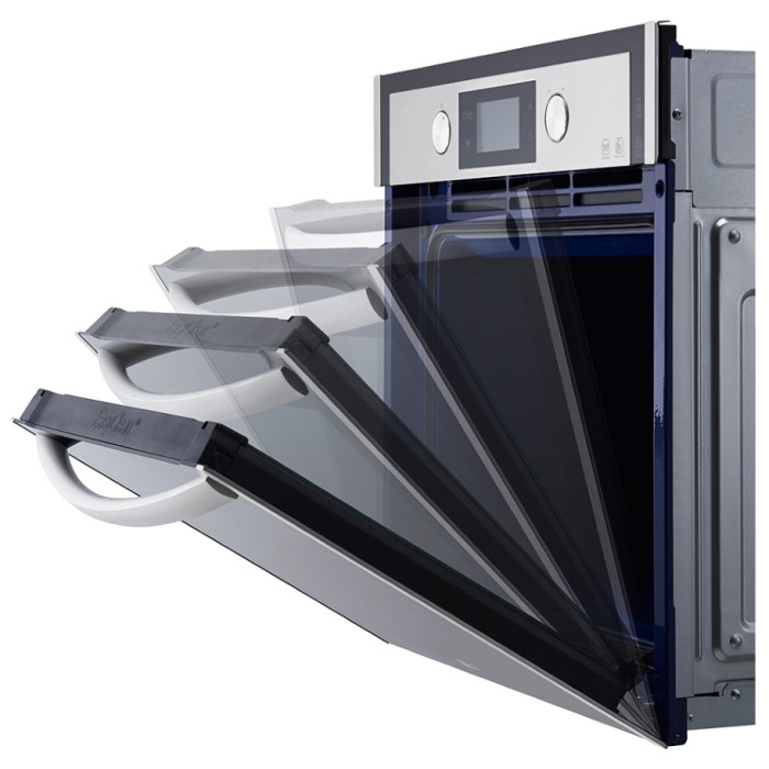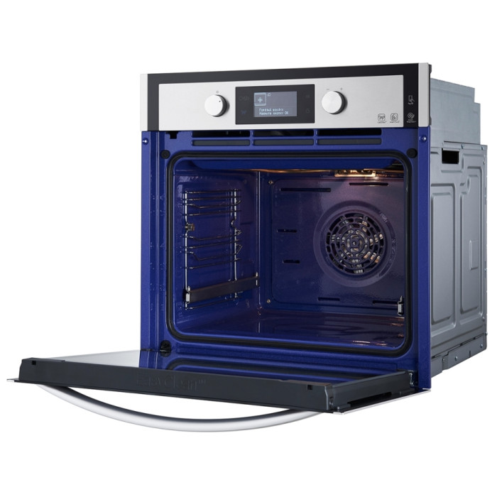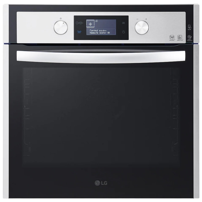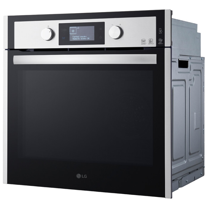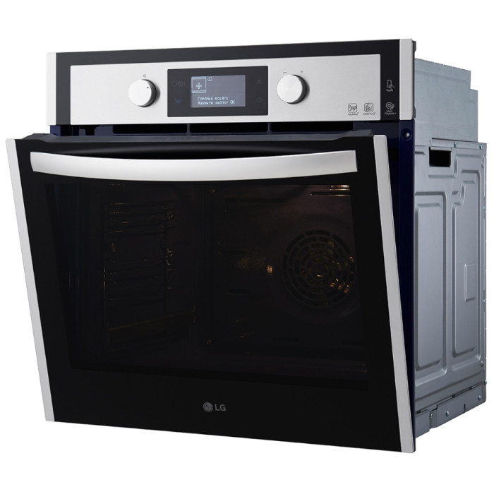 одна телескопическая направляющая, вес 34 кг, линейный контроль температуры, приложение для смартфонов на Андроид «LG Smart Oven Global» (рецепты и cамодиагностика); глубокий противень, противень для выпечки; тип часов: электронные; вентилятор охлаждения