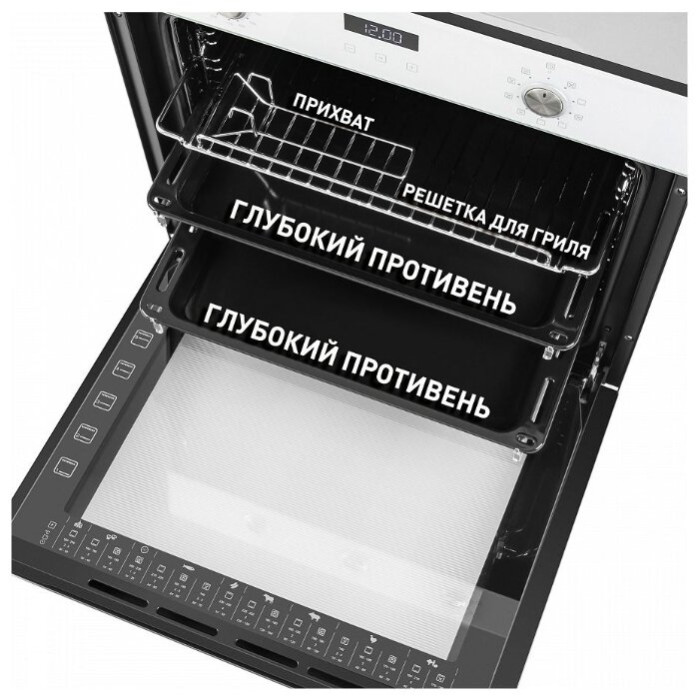 верхний нагрев + нижний нагрев, конвекция, нижний нагрев + конвекция, большой гриль, малый гриль