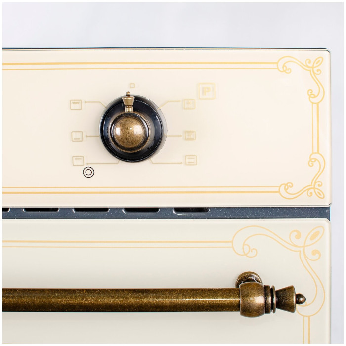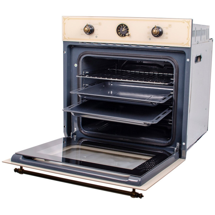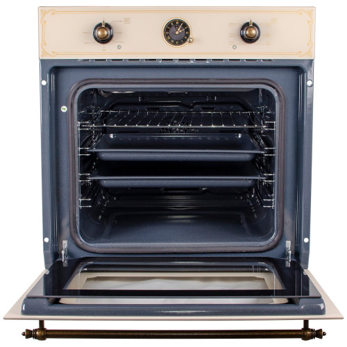 тип духовки: электрическая, установка: независимая, ширина: 59.50 см, конвекция, гриль, тип гриля: электрический, объем духовки: 67 л, количество стекол дверцы духовки: два, переключатели: поворотные, Rustic, класс энергопотребления: A, особенности конструкции: часы, высота: 58.50 см, максимальная температура: 270 °C