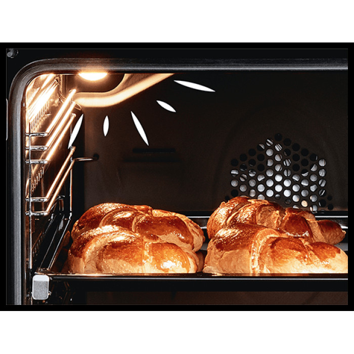 нагрев кольцевым элементом; 3D приготовление; медленное приготовление; вентилятор охлаждения; одноуровневые телескопические направляющие; пятиуровневые боковые направляющие; съемное стекло дверцы; размер ниши для встраивания 60х56х55 см, сетевой провод 1.4 м с вилкой; общая мощность 2500 Вт; вес 35.1 кг