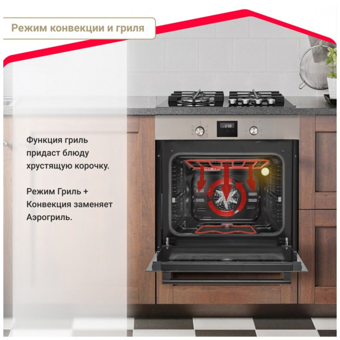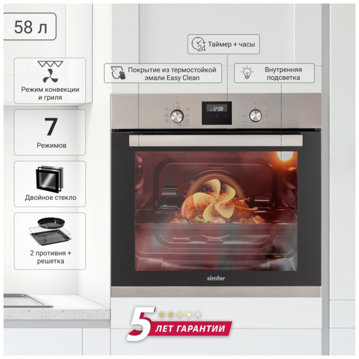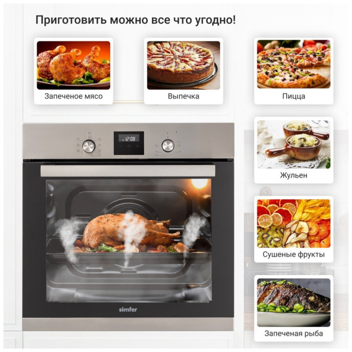 нижний нагрев, верхний нагрев, верхний нагрев + нижний нагрев, нижний нагрев + конвекция, гриль + конвекция, большой гриль, конвекция