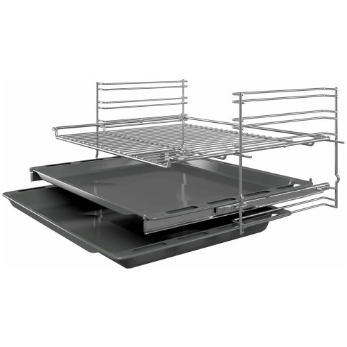 тип духовки: электрическая, установка: независимая, ширина: 59.40 см, конвекция, гриль, тип гриля: электрический, очистка духовки: гидролизная, объем духовки: 66 л, количество стекол дверцы духовки: два, переключатели: поворотные, класс энергопотребления: A, особенности конструкции: часы, эмаль легкой чистки, подсветка камеры, телескопические направляющие, дисплей, дополнительные функции: таймер, высота: 59.50 см, максимальная температура: 270 °C, безопасность: Система охлаждения