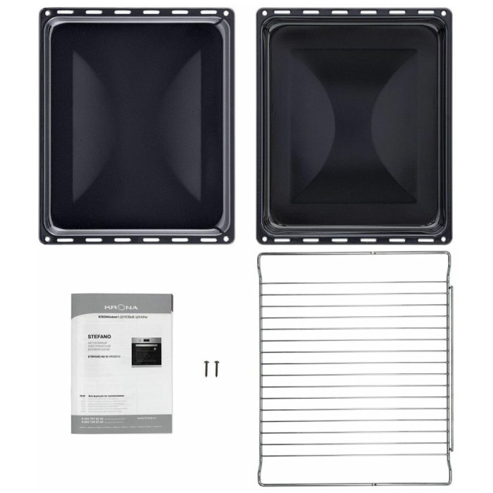 Стандартный противень, глубокий противень, решетка для гриля, установочный комплект, инструкция