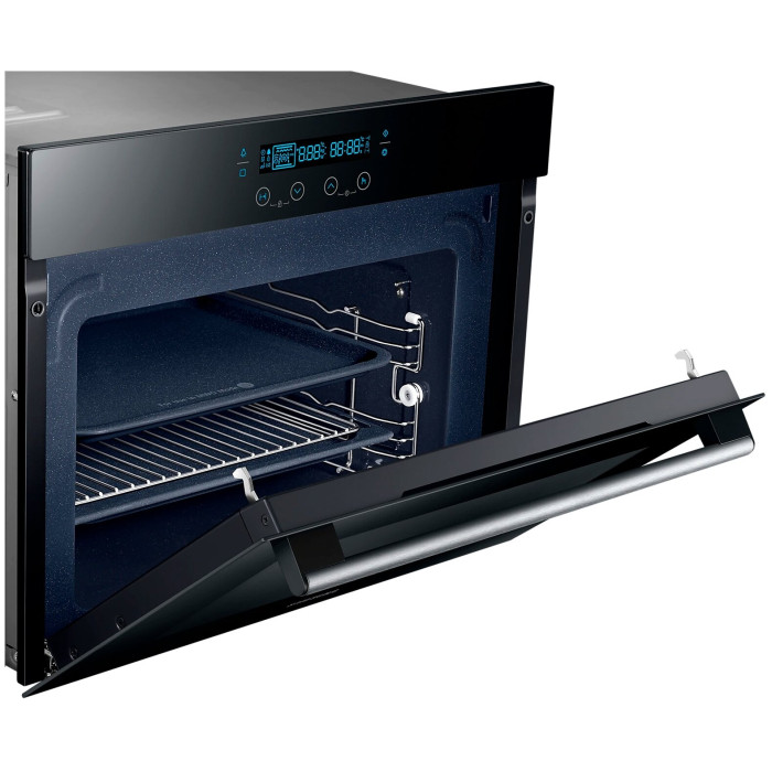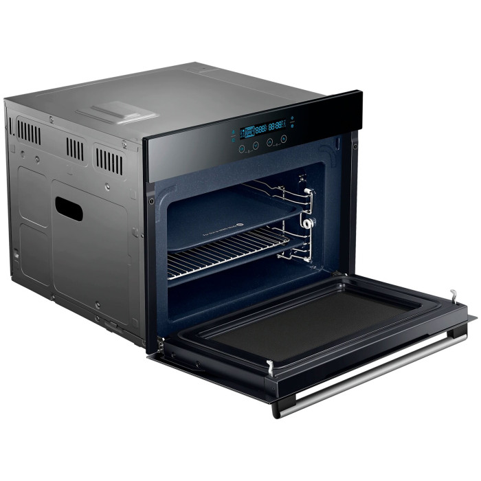 Благодаря особой технологии распределения микроволн этот компактный духовой шкаф с функцией СВЧ обеспечивает быстрый и равномерный прогрев блюда. Кроме того, печь оснащена несколькими системами нагрева, включая конвекционный вентилятор, обеспечивающий циркуляцию горячего воздуха в рабочей камере для равномерного приготовления блюда, а также гриль для создания хрустящей корочки.