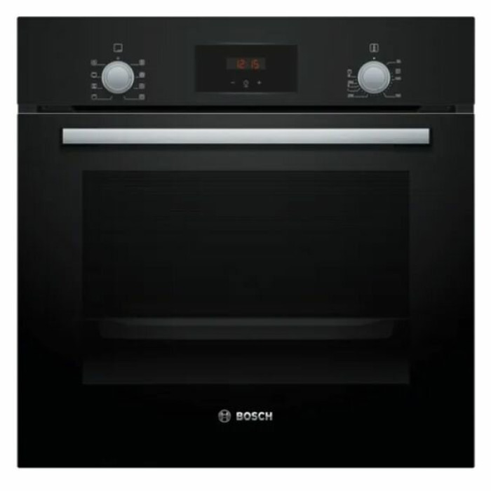 Электрический духовой шкаф черный и объемом 66 л работает в диапазоне температур от 50°С до 275°C. Управление производится при помощи утапливаемых поворотных переключателей и сенсорного дисплея с возможностью блокировки доступа. Продолжительность приготовления можно задать при помощи таймера.