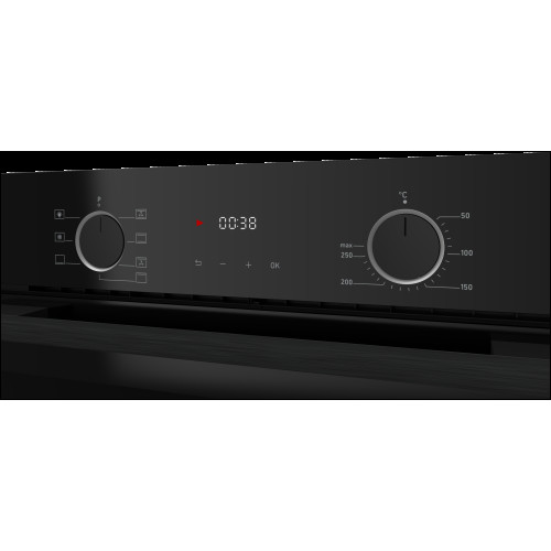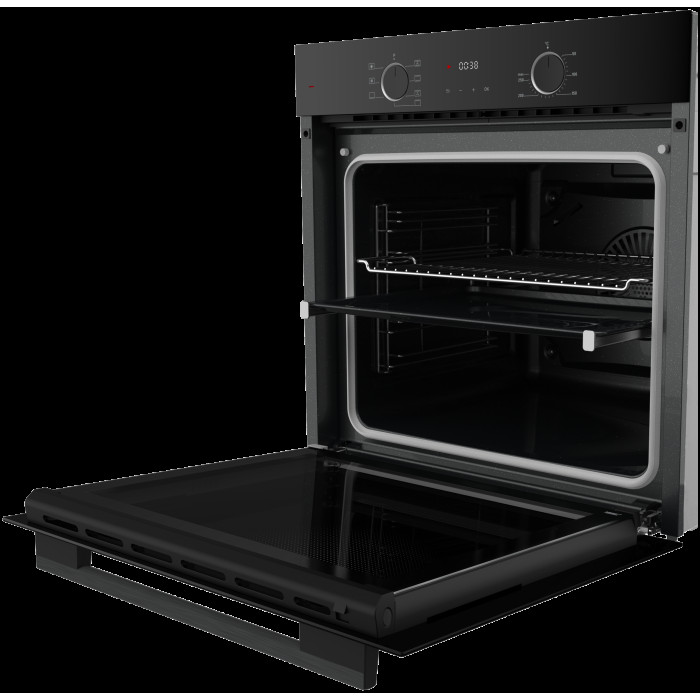 тип духовки: электрическая, установка: независимая, ширина: 59.50 см, конвекция, очистка духовки: гидролизная, объем духовки: 80 л, количество стекол дверцы духовки: два, переключатели: поворотные, особенности конструкции: эмаль легкой чистки, подсветка камеры, телескопические направляющие, дисплей, дополнительные функции: размораживание, таймер, высота: 59.50 см