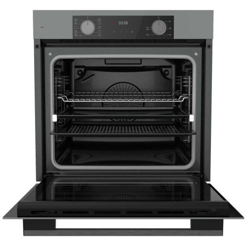 тип духовки: электрическая, установка: независимая, ширина: 59.50 см, конвекция, гриль, тип гриля: электрический, очистка духовки: гидролизная, объем духовки: 80 л, количество стекол дверцы духовки: два, переключатели: поворотные, особенности конструкции: дисплей, подсветка камеры, телескопические направляющие, эмаль легкой чистки, дополнительные функции: быстрый нагрев, размораживание, таймер, высота: 59.50 см