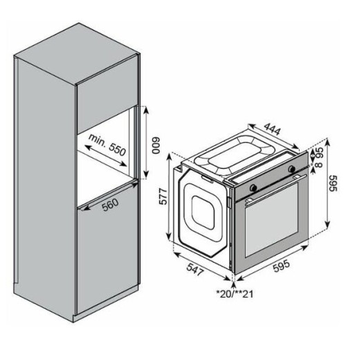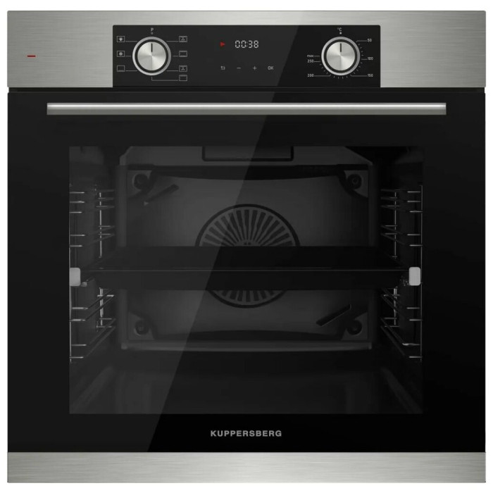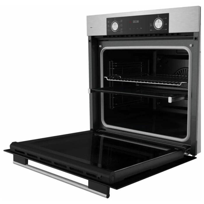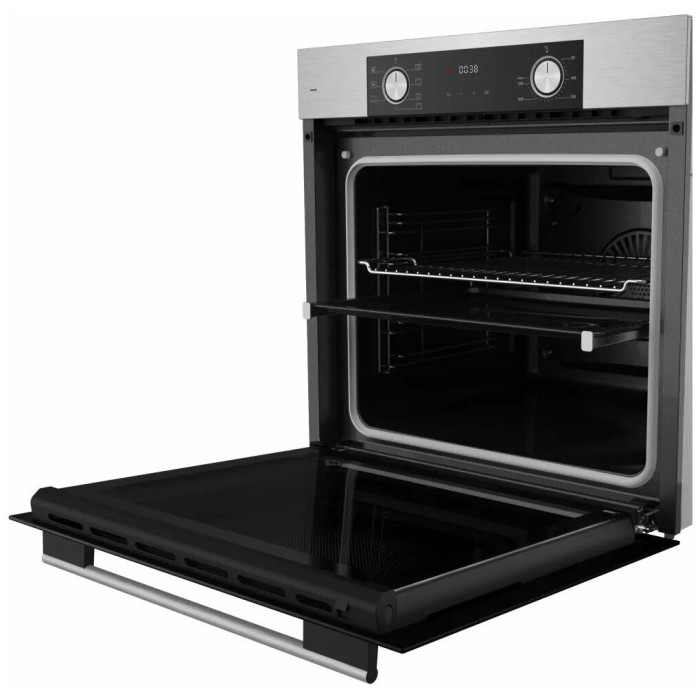 тип духовки: электрическая, установка: независимая, ширина: 59.50 см, конвекция, очистка духовки: гидролизная, объем духовки: 80 л, количество стекол дверцы духовки: два, переключатели: поворотные, особенности конструкции: эмаль легкой чистки, подсветка камеры, телескопические направляющие, дисплей, дополнительные функции: размораживание, таймер, высота: 59.50 см
