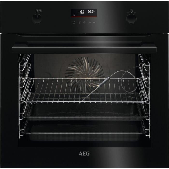 Духовой шкаф AEG BCE556360B объемом 71 л представлен в черном цвете, поэтому он идеально впишется в любой интерьер кухни. Такая модель отлично подойдет для небольшой кухни, ведь ее ширина равна 59,5 см. Благодаря форме полок с защитой от наклона Ваши блюда будут находиться в идеальном положении во время готовки. Помимо этого, вы сможете доставать еду легко и безопасно. Стекло дверцы сделано из двойного стекла, то есть оно хорошо удерживает горячий воздух в камере и в тоже время позволяет следить за тем, что происходит внутри. Она сделана по принципу «Холодный фронт» и практически не нагревается снаружи. Прибор порадует наличием функции гриля, активировав которую вам не составит труда побаловать домочадцев и гостей аппетитным мясом или птицей с хрустящей корочкой. Помимо этого, он оснащен функцией пара. Всего предусмотрено 8 режимов приготовления, благодаря которым вы сможете приготовить самые разнообразные блюда. А обширный функционал облегчит вам весь этот процесс. Чтобы исключить необходимость в постоянном открывании дверцы духовки, производитель позаботился о наличии мощной подсветки, позволяющей отследить ход кулинарного процесса. Такие лампы потребляют минимум электроэнергии. Режим размораживания позволяет вам быстро и легко подготавливать к приготовлению продукты из морозилки без усилий и потери качества. Панель управления духового шкафа AEG BCE556360B представлена поворотными и сенсорными переключателями, воспользовавшись которыми вам не составит труда определиться с желаемыми параметрами. Переключатели устойчивы к температурному воздействию, а также не требуют за собой специального ухода. Имеется термощуп с помощью него вы можете отслеживать температуру мяса. Равномерное выпекание на каждом уровне приготовления с вентилятором, который обеспечивает поток горячего воздуха.