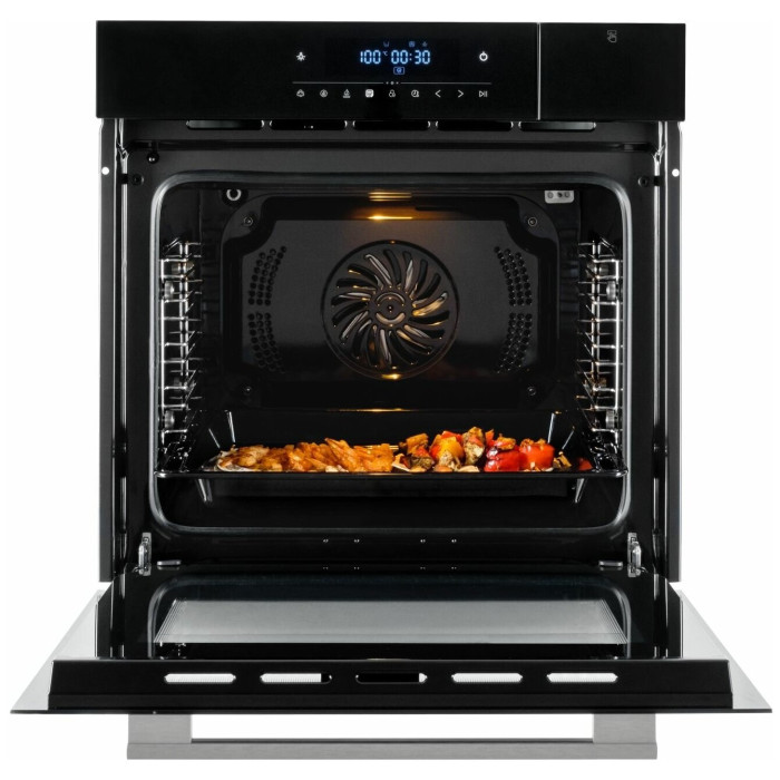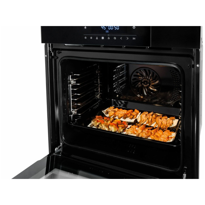 тип духовки: электрическая, установка: независимая, ширина: 60 см, конвекция, гриль, тип гриля: электрический, объем духовки: 66 л, количество стекол дверцы духовки: четыре, переключатели: сенсорные, класс энергопотребления: A+, особенности конструкции: дисплей, подсветка камеры, эмаль легкой чистки, дополнительные функции: добавление пара, подогрев посуды, размораживание, максимальная температура: 260 °C