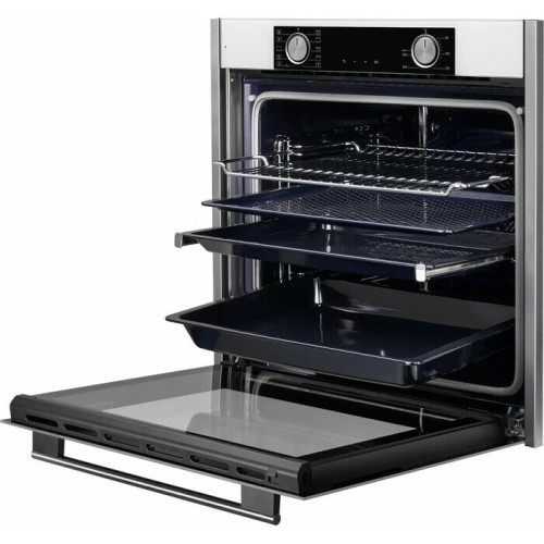 тип духовки: электрическая, ширина: 59.50 см, конвекция, гриль, тип гриля: электрический, объем духовки: 80 л, количество стекол дверцы духовки: два, переключатели: поворотные, класс энергопотребления: A++, особенности конструкции: дисплей, телескопические направляющие, часы, дополнительные функции: таймер, высота: 59.50 см