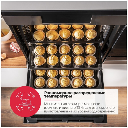 большой гриль, верхний нагрев + нижний нагрев, гриль + конвекция, конвекция, нижний нагрев