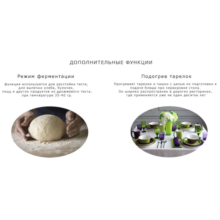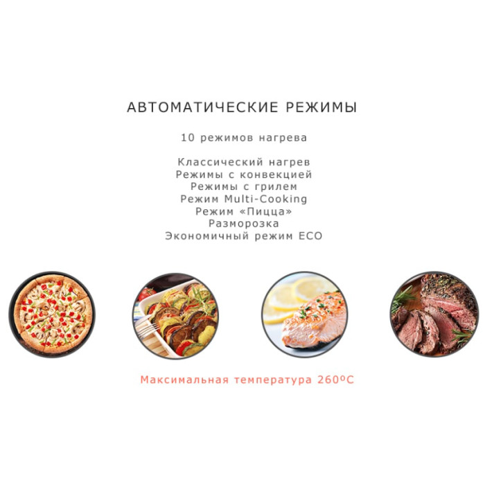 большой гриль, верхний нагрев, верхний нагрев + конвекция, гриль + конвекция, нижний нагрев, нижний нагрев + конвекция