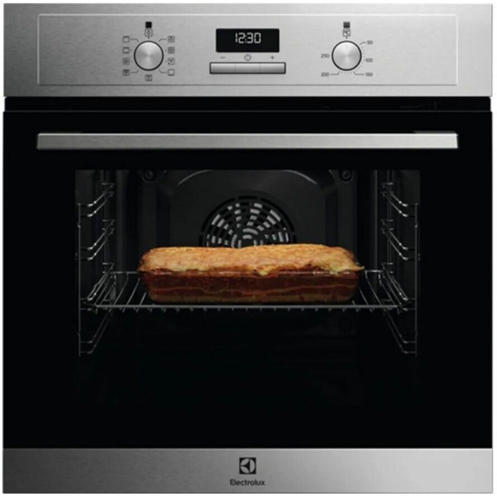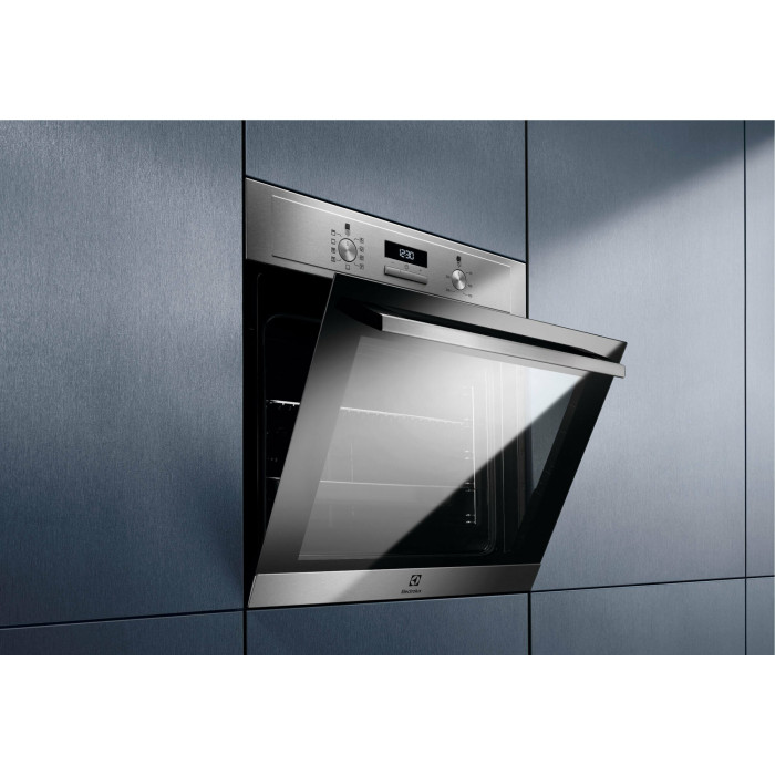 Духовой шкаф Electrolux EOF3H40BX нержавеющая сталь, электрическая духовка, объём 65л, покрытие: эмаль легкой очистки, электрический гриль, программ духовки: 8, независимое управление, переключатели поворотные/кнопки