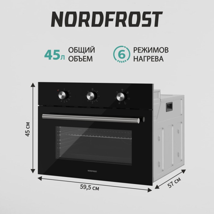Встраиваемый электрический духовой шкаф NORDFROST HM 5060 шириной 60 см оснащен 6 режимами нагрева, функцией конвекции и таймером. Современный стильный дизайн модели и дверь из закаленного стекла придает технике эстетически привлекательный вид и образует единую линию с кухонным гарнитуром.
