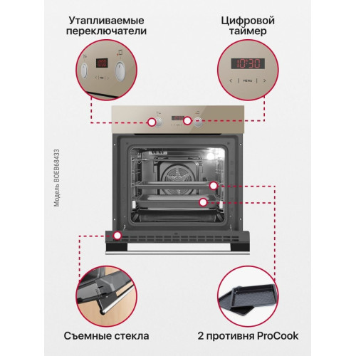 Тип духовки: электрическая; Объем духовки: 65 л; Установка: независимая; Мощность подключения: 2.8 кВт; Максимальная температура: 250 °C; Переключатели: утапливаемые; Утапливаемые переключатели: да; Очистка духовки: гидролизная;