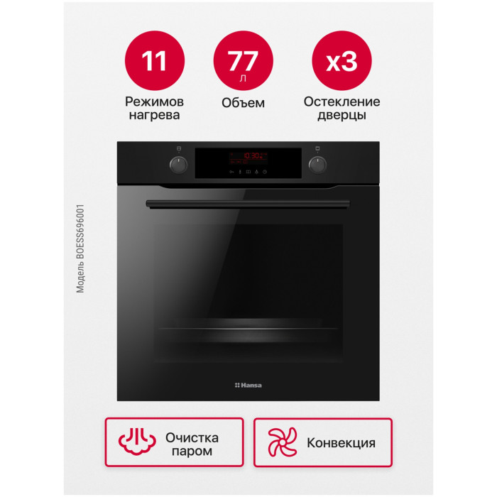 большой гриль, верхний нагрев, верхний нагрев + нижний нагрев, гриль + конвекция, конвекция, нижний нагрев