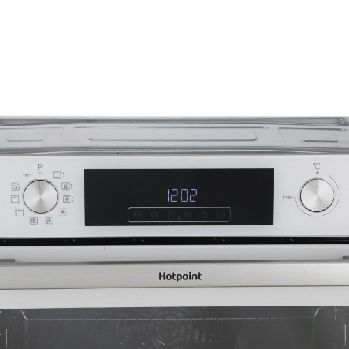 Электрический духовой шкаф Hotpoint FE9 831 JSH WHG в корпусе черно-серебристой расцветки оснащен восемью режимами работы, включая конвекцию. Максимальная температура нагрева — 280°C. Откидная дверца оснащена механизмом плавного закрытия и вставкой из трехслойного стекла.