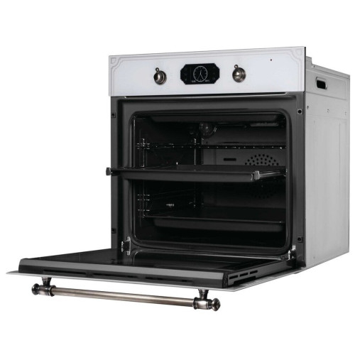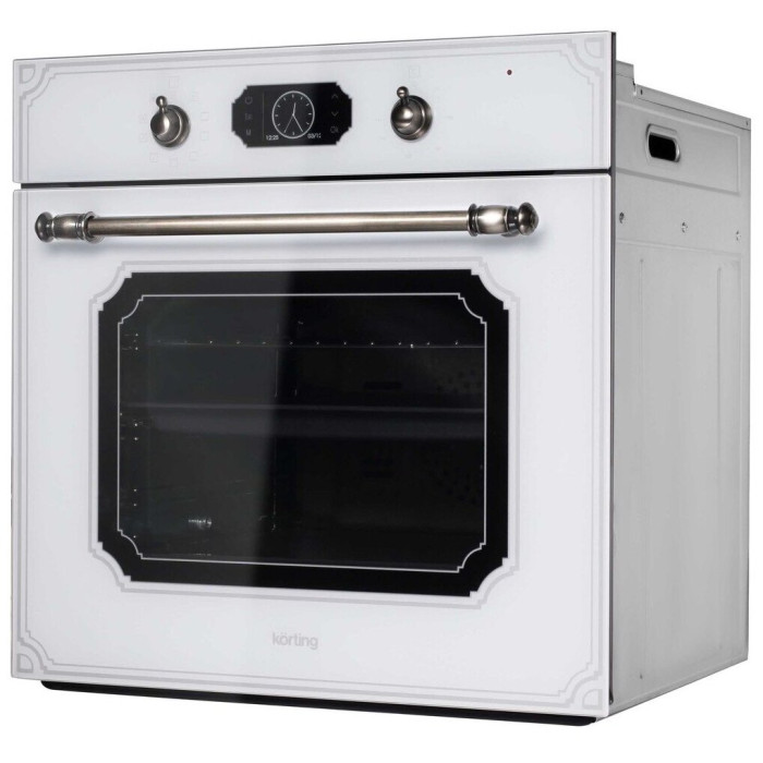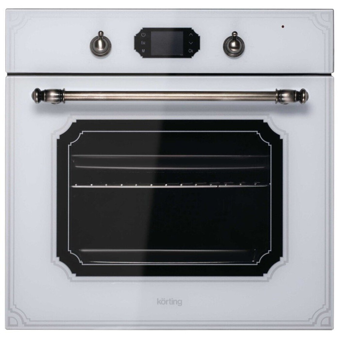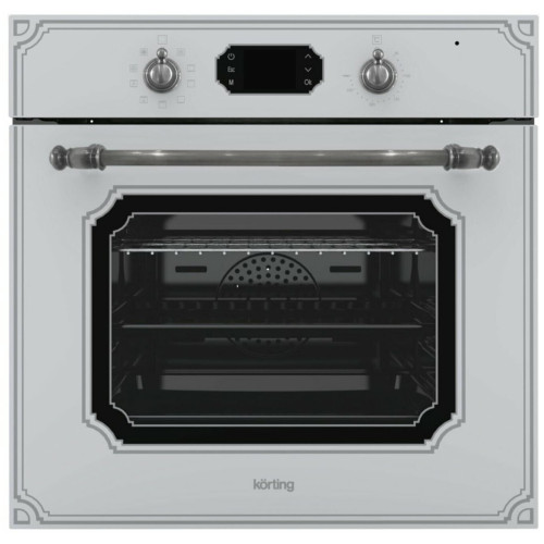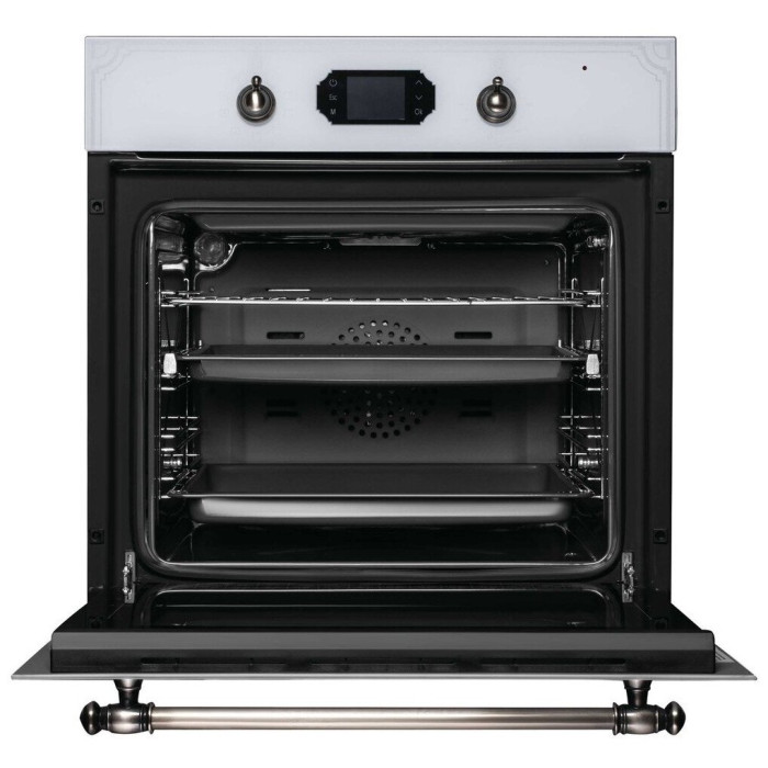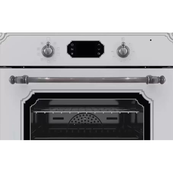 Электрические духовые шкафы, серия ретро, дизайн Bizantium. Электронное управление, цветной TFT дисплей с индикацией функций приготовления и таймера, электронный таймер отключения и отложенного старта, автопрограммы (книга рецептов). Материал наружной поверхности двери и контрольной панели - стекло, 9 режимов. Температурный щуп, одноуровневые телескопические направляющие. Дверца духового шкафа с двойным остеклением, система автоматического охлаждения, автоматическое отключение. Эмаль легкой очистки серого цвета, каталитическая очистка. Аксессуары: противень для выпечки, глубокий противень, хромированная решетка. Цвет - бежевое стекло, ручка и регуляторы - бронза.