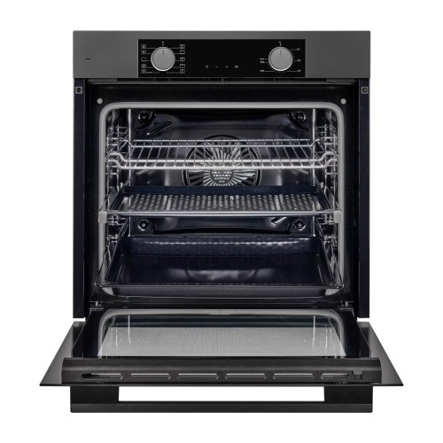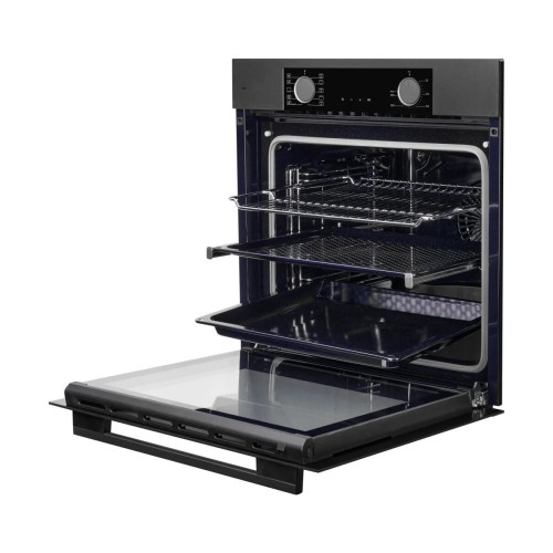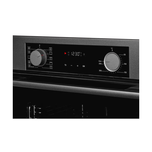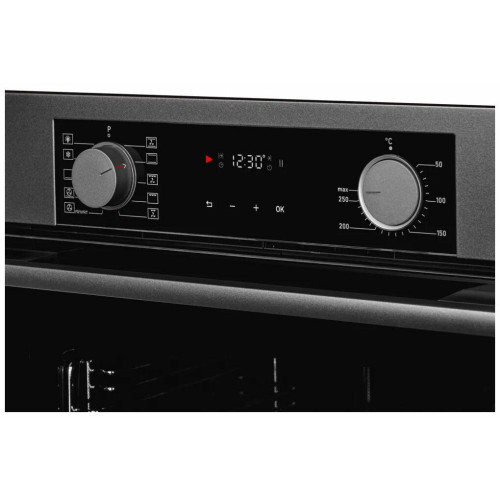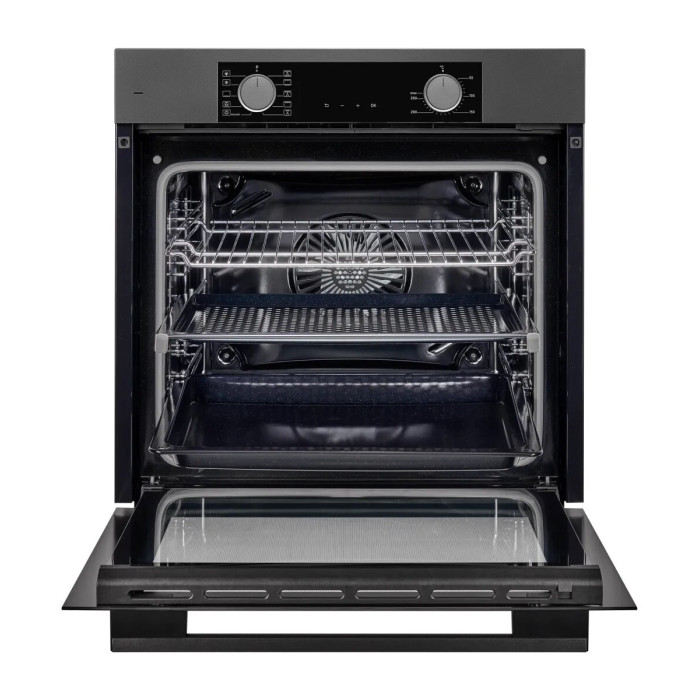 Вентилятор охлаждения, Встроенные часы, Двухуровневое приготовление, Дисплей, Доводчик дверцы духовки, Хромированные направляющие