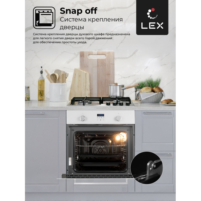 Встраиваемый духовой электрошкаф LEX EDP 093 оснащен сенсорным управлением с LED-подсветкой и дисплеем. Утапливаемые ручки управления, таймер делают девайс для кухни более удобным. Духовка имеет расширенный функционал: 9 режимов работы, среди которых базовые, а также турбо гриль. Используя HD конвекцию (Heat Diffusion), которая равномерно распределяет жар по внутреннему пространству электродухового шкафа, можно готовить одновременно на нескольких уровнях. Эта модель встраиваемой бытовой техники для кухни имеет тангенциальный тип охлаждения: вентилятор забирает воздух с нижней внешней части и прогоняет его по стенкам. Покрытие ручек духового шкафа SoftSense не только приятно на ощупь, но и предотвращает соскальзывание руки. Технология Confit дает возможность использовать томление при небольшом нагреве. Строгий, минималистичный встроенный духовой шкаф LEX EDP 093 прекрасно дополнит интерьер кухни в современных стилях лофт, функционал, хай-тек и любом другом. Серая эмаль легкой очистки, хромированные телескопические направляющие, съемная дверца с системой SnapOff делают уход простым и быстрым. Дверца духового шкафа со съемным тройным стеклом не допустит ожога. В комплект поставки входят решетка и эмалированные противни. Длина провода 1 м.