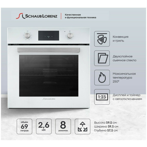 Электрический духовой шкаф Schaub Lorenz SLB-EW6832 – это идеальное решение для тех, кто ценит комфорт и функциональность. Этот духовой шкаф имеет объем 65 литров, что позволяет готовить большие блюда на всю семью. Он оснащен 8 режимами работы, включая конвекцию, гриль и размораживание. Благодаря программируемому таймеру с автоотключением вы можете быть уверены, что ваше блюдо будет готово точно в срок. Очистка камеры духового шкафа осуществляется легко и быстро благодаря эмали легкой очистки. Кроме того, внутреннее стекло LOW-E обеспечивает энергосбережение и защиту от перегрева.