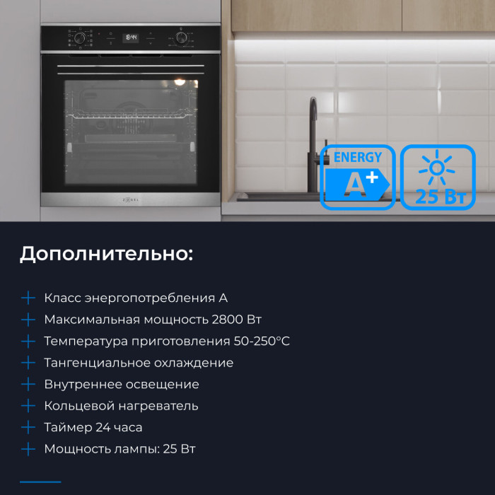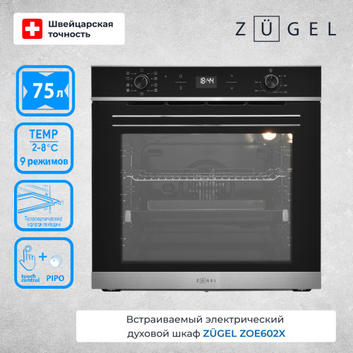 Электрический духовой шкаф ZUGEL ZOE602X - это современное и функциональное решение для вашей кухни. Он выполнен в стальном цвете, что придает ему строгий и современный вид.