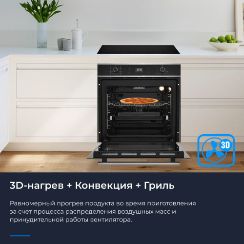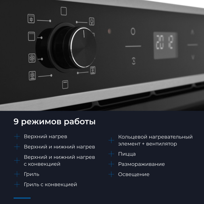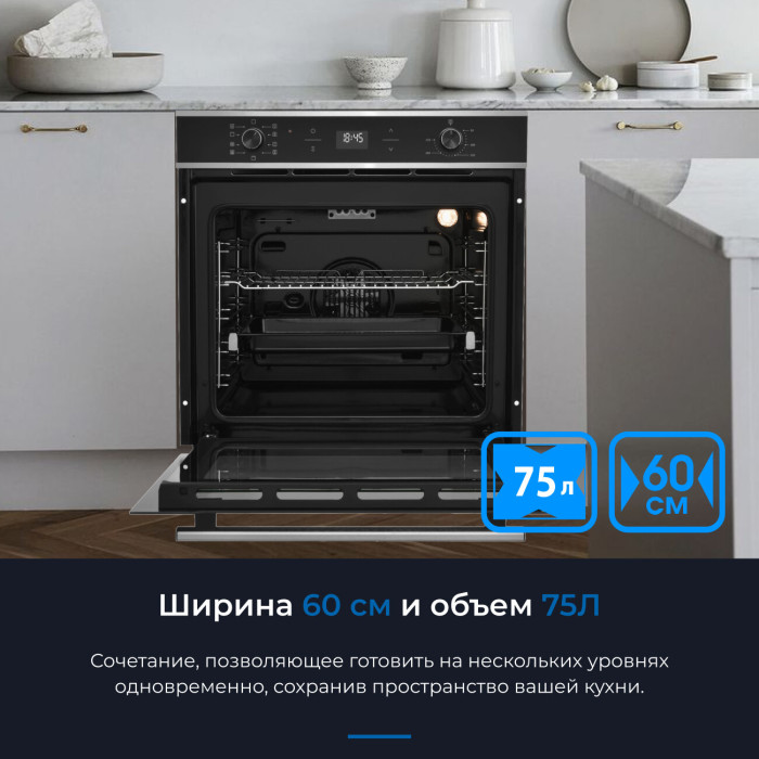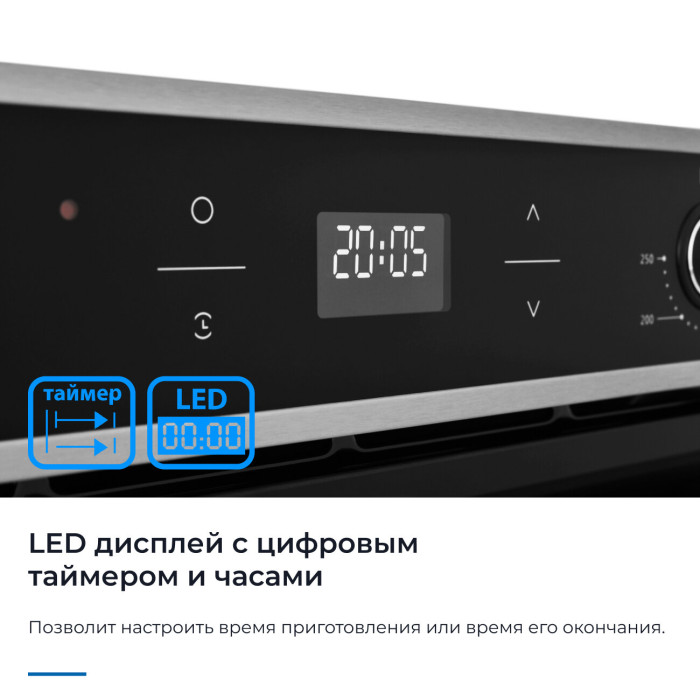 Вентилятор охлаждения, Встроенные часы, Двухуровневое приготовление, Дисплей, Хромированные направляющие